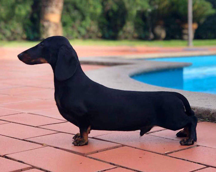 If we could attach his head to every Dachshund we ever meet, we would be very happy. Ronny's lean skull, long muzzle, virtual absense of stop, and absolutely gorgeous eyes and expression had us at hello! Well sized well placed ears are a cherry on top. These qualities alone are worth perpetuating, but wait, there is also a very decent, well put together body attached to that amazing head.