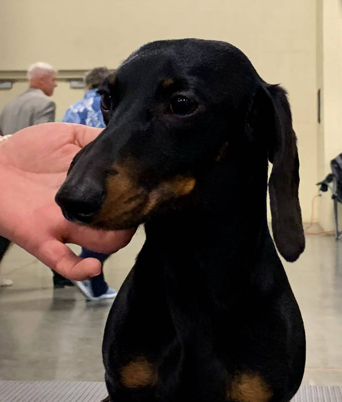 If we could attach his head to every Dachshund we ever meet, we would be very happy. Ronny's lean skull, long muzzle, virtual absense of stop, and absolutely gorgeous eyes and expression had us at hello! Well sized well placed ears are a cherry on top. These qualities alone are worth perpetuating, but wait, there is also a very decent, well put together body attached to that amazing head.
